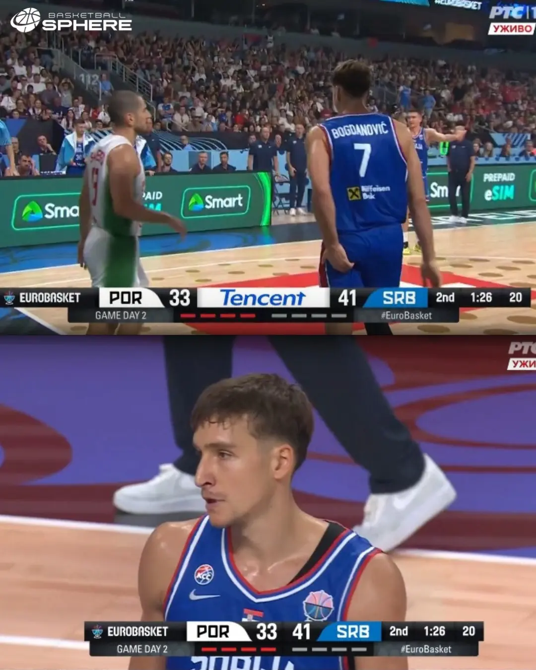 北京时间8月30日,塞尔维亚队80-69击败葡萄牙队,获得欧洲杯小组赛两连胜。不过,他们在这场比赛中也遭遇打击,队长博格丹-博格达诺维奇遭遇了腿筋伤病。在上半场一次冲击篮筐后,他抓住了自己的大腿后侧,迫使他离开了比赛。退出比赛前,博格丹出战不到15分钟,4投3中,贡献7分5篮板,正负值+11。